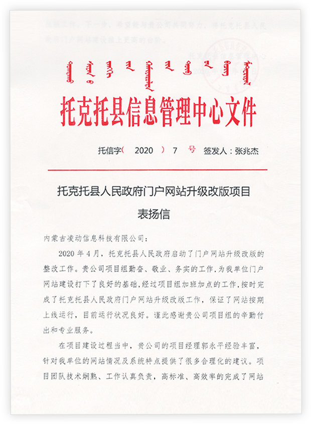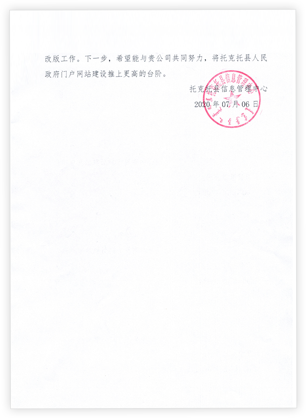 在项目建设过程中,贵公司的项目经理郭永平经验丰富,针对我单位的网站情况及系统特点提供了很多合理化的建议。项目团队技术娴熟、工作认真负责,高标准、高效率的完成了网站改版工作。