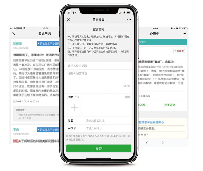 与微信有机集成,市民可基于微信提交诉求,直达市领导,处理过程由各旗县区、各委办局一把手直接受理和答复。